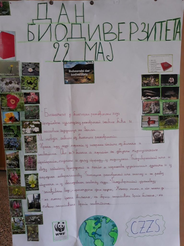 Поводом 22. маја, Дана биодиверзитета, ученици осмог разреда су заједно са својом наставницом Селеном Ђурић припремили предавање за ученике наше школе. Тиме су указали на значај поштовања природе и њене разноликости као и важност очувања ријетких и угрожених врста.